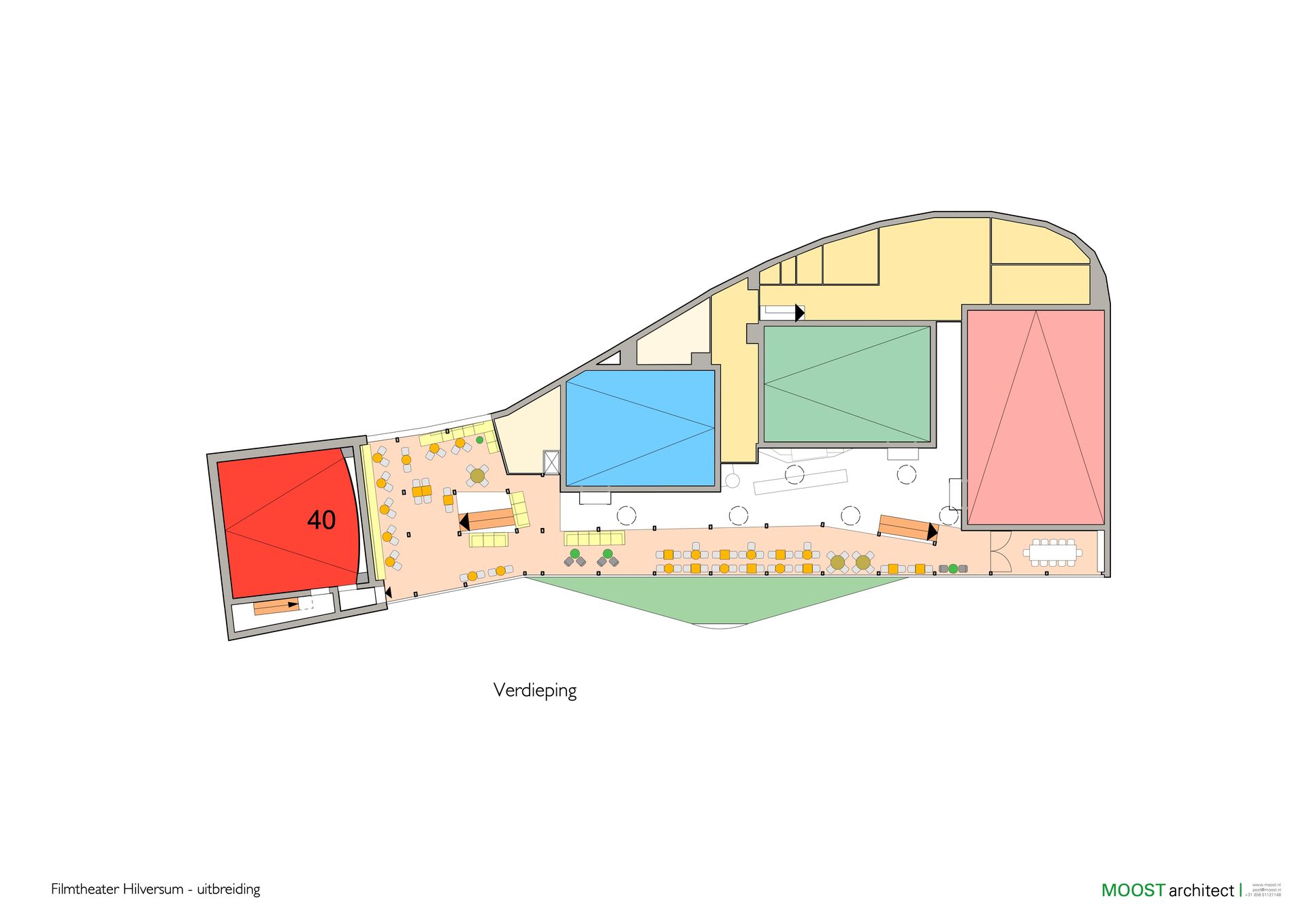 Het Filmtheater in Hilversum, één van de best lopende filmtheaters in Nederland. De basis is een eenvoudig gebouw aan een bescheiden plein. Door een groeiend aantal bezoekers en een groter filmaanbod is het een grote wens om twee zalen bij te bouwen. Tevens is een ruime foyer voorzien.