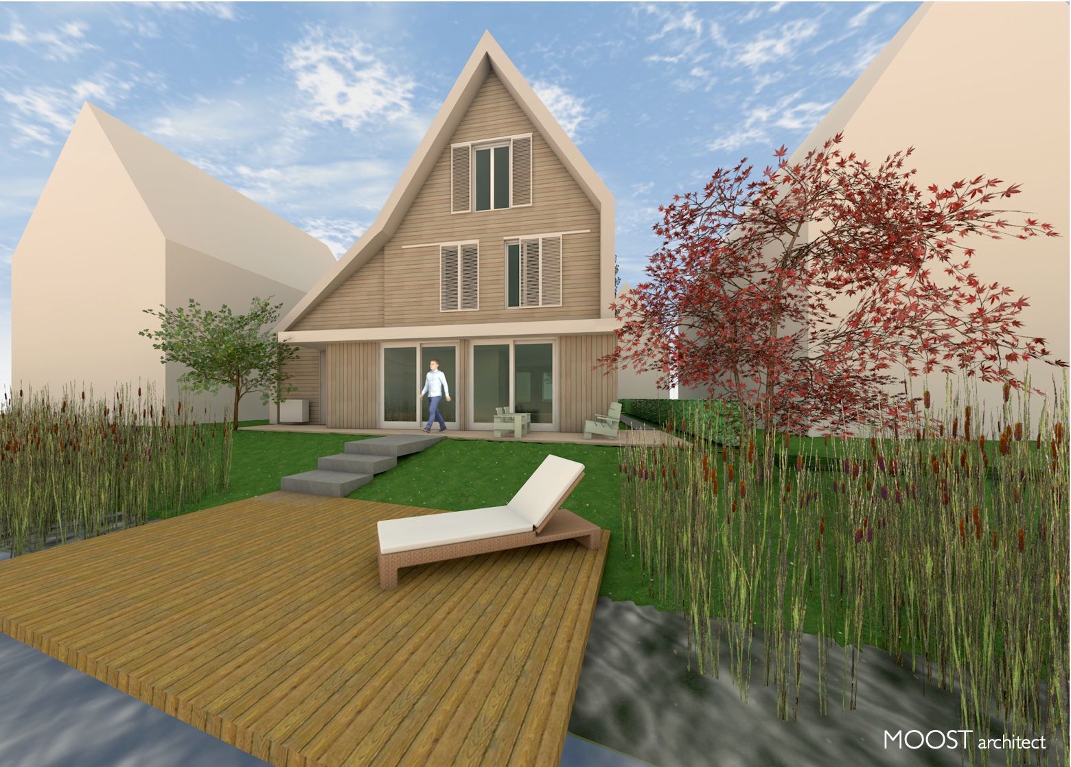 Een mooi kavel aan het water in het nieuwe dorp van Almere, Nobelhorst. een buurt met veel jonge mensen, scholen en straks ook voorzieningen. Samen met de opdrachtgever hebben we een houten woning ontworpen voor een jong gezin. Ruimte, duurzaamheid en geborgenheid.